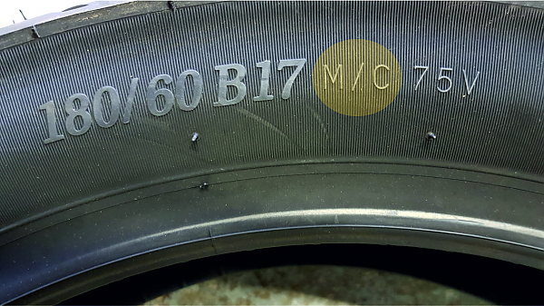 Dodatečné označení pneumatik písmeny M/C upřesňuje, že se jedná o pneu výhradně určené pro motocykly. To proto, aby nedošlo - třeba při objednávce - k nepříjemné záměně. Například pneumatiky se stejným nebo podobným obchodním názvem (namátkou Michelin Pilot), se totiž vyrábějí jak pro automobily, tak pro motocykly.